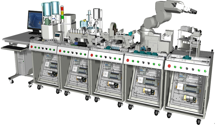 機電一體化技術實訓設備是指機械技術、電工電子技術、微電子技術、信息技術、傳感器技術、接口技術、信號變換技術等多種技術進行有機地結合,并綜合應用到實際中去的技能實訓綜合技術,現(xiàn)代化的自動生產設備幾乎可以說都是機電一體化的設備。自動化生產線實訓考核系統(tǒng),可以培養(yǎng)和提高學生專業(yè)綜合能力,是一種重要的實訓設備。自動化生產線實訓系統(tǒng)、基于PLC技術的自動化生產線實訓考核系統(tǒng),可以培養(yǎng)和提高學生專業(yè)綜合能力,是一種重要的實訓設備。自動化生產線實訓系統(tǒng)整體包括自動供料、檢測傳輸、檢測加工、自動裝配、自動分揀等工序,很好的將機械技術、微電子技術、電工電子技術、傳感測試技術、接口技術、信息變換技術、網.絡通信技術等多種技術有機地結合。該系統(tǒng)中自動分揀站的設計過程,包括系統(tǒng)硬件設計、PLC控制設計和程序設計方法。現(xiàn)代化的自動生產設備的最大特點是它的綜合性和系統(tǒng)性,在這里,機械技術、微電子技術、電工電子技術、傳感測試技術、接口技術、信息變換技術、網絡通信技術等多種技術有機地結合,并綜合應用到生產設備中:而系統(tǒng)性指的是,生產線的傳感檢測、傳輸與處理、控制、執(zhí)行與驅動等機構在微處理單元的控制下協(xié)調有序地工作,有機地融合在一起。可編程序控制器(PLC)以其高抗干擾能力、高可靠性、高性能價格比且編程簡單而廣泛地應用在現(xiàn)代化的自動生產設備中,擔負著生產線的大腦一微 處理單元的角色。因此,培養(yǎng)掌握機電一體化技術,掌握PLC技術及PLC網絡技術的技術人材是當務之急。而一套基于PLC技術的自動化生產線實訓考核設備可以模擬一個與實際生產情況+分接近的控制過程,使學習者得到一個非常接近于實際的教學設備環(huán)境,從而縮短了理論教學與實際應用之間的距離。自動分揀站需完成對上一單元送來的已加工、裝配的工件進行分揀。使不同顏色的工件從不同的料槽分流的功能。當輸送站送來工件放到傳送帶上并為入料口光電傳感器檢測到時,即啟動變頻器,工件開始送入分揀區(qū)進行分揀。上海碩博弘揚大國工匠精神, 發(fā)展職業(yè)教育,應用教學設備,為企業(yè)培養(yǎng)高技能人才,而專業(yè)生產:光機電一體化(自動生產線)實訓裝置、灌裝自動化生產線實訓裝置、工業(yè)自動生產線實訓裝置 、工業(yè)控制模擬實訓裝置 、機電一體化組合實訓平臺 、機電一體化綜合實訓考核裝置、自動化生產安裝與調試實訓裝置 、光機電一體化高速分揀實訓系統(tǒng) 、典型機電設備安裝與控制實訓裝置、模塊式柔性自動環(huán)形生產線實驗系統(tǒng)(帶機器人工程型)、立體停車庫實物教學實驗裝置、機電一體化柔性生產線加工實訓系統(tǒng)(5站)、網絡型模塊式柔性自動化生產線實驗系統(tǒng)、模塊式柔性自動環(huán)形生產線實驗系統(tǒng)(工程型)、柔性生產制造實驗系統(tǒng)(工程型)、現(xiàn)代物流倉儲自動化實驗系統(tǒng)、運動實訓裝置、循環(huán)搬運自動控制實訓裝置、平面雙軸運行控制實訓裝置、工業(yè)機械手實訓裝置、物料分揀實訓裝置、機械手實訓裝置 、立體倉庫實訓裝置、十字路口交通燈實訓系統(tǒng)、機電液氣一體化綜合實訓裝置、光機電一體化高速分揀實訓系統(tǒng)、步進伺服控制綜合實訓平臺、光機電氣一體化控制實訓系統(tǒng)、 光機電一體化綜合實訓考核裝置、光機電一體化實訓考核裝置、光機電一體化實訓考核裝置、光機電氣一體化控制實訓系統(tǒng)、自動生產線拆裝與調試實訓裝置、柔性自動化生產線實訓系統(tǒng)。