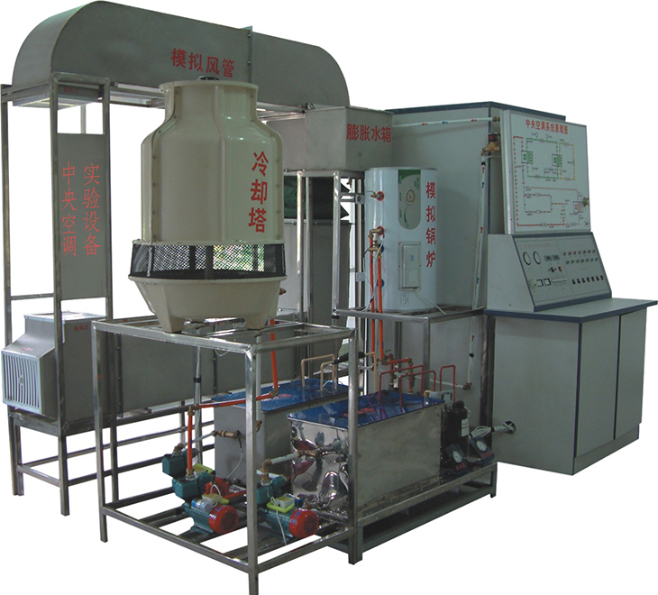 中央空調(diào)實(shí)驗(yàn)設(shè)備是將中央空調(diào)微型化,同時(shí)保持整個(gè)中央空調(diào)系統(tǒng)的完整性和合理性。本實(shí)驗(yàn)系統(tǒng)采用微機(jī)控制能單獨(dú)演示中央空調(diào)的夏天制冷、冬天制熱循環(huán),控制系統(tǒng)由電腦控制與手動(dòng)控制二種方法演示。為了解各種參數(shù)的變化情況和系統(tǒng)的工作狀況。實(shí)驗(yàn)臺(tái)增加了一些輔導(dǎo)結(jié)構(gòu),使其能人為地制造各種實(shí)際中可產(chǎn)生的系統(tǒng)故障,方便學(xué)員了解故障的產(chǎn)生和排除故障的方法。