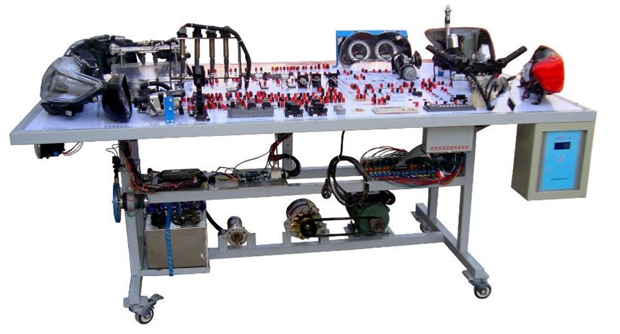 汽車電氣設(shè)備實訓(xùn)室。汽車電器設(shè)備實訓(xùn)室包含有汽車燈光系統(tǒng)、車載網(wǎng)絡(luò)系統(tǒng)、全車電器系統(tǒng)、汽車啟動系統(tǒng)、汽車空調(diào)系統(tǒng)、全車線路試驗臺、等實訓(xùn)教學設(shè)備。該實訓(xùn)室可以承擔《汽車構(gòu)造》、《汽車電器設(shè)備》、《汽車電控系統(tǒng)》、《汽車檢測與診斷》等課程的實踐教學任務(wù)?梢杂糜谘芯俊⒎治鋈囯娖飨到y(tǒng)、燈光系統(tǒng)、儀表系統(tǒng)等電器設(shè)備的電路及功能。利用這些系統(tǒng)進行實踐教學,使學生熟悉汽車電器的結(jié)構(gòu)和工作原理,掌握各個系統(tǒng)的基本組成電路,掌握主要電路的檢測方法和系統(tǒng)的故障特征,從而具有一定的檢測和調(diào)校能力。