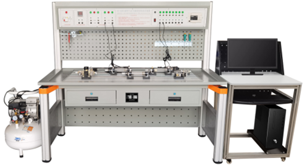 實驗臺由實驗桌、實驗操作區(qū)、網孔工具掛板、靜音氣泵、常用氣動元件、主控機箱、電腦桌等幾部分組成。