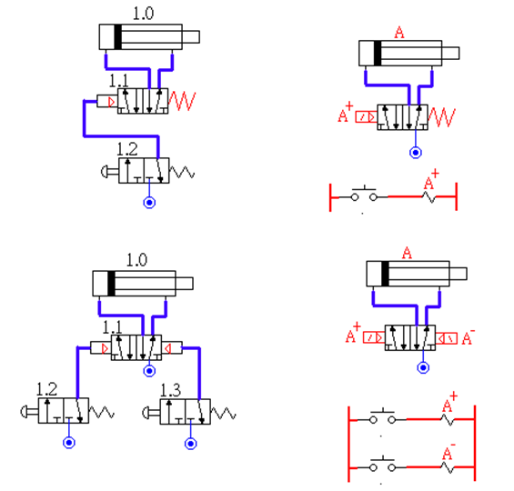 7.多種控制方式:純氣動(手動)控制回路、采用繼電器的電控氣動回路、采用可編程控制器的電控氣動回路、組態(tài)控制回路(需搭接相應軟件、硬件)
