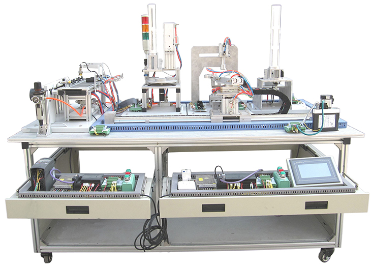 光機(jī)電氣一體化控制實(shí)訓(xùn)平臺(tái)由由鋁合金導(dǎo)軌式實(shí)訓(xùn)臺(tái)、典型的機(jī)電一體化設(shè)備的機(jī)械部件、PLC模塊、變頻器模塊、按鈕模塊、電源模塊、模擬生產(chǎn)設(shè)備實(shí)訓(xùn)模塊、接線端子排和各種傳感器、計(jì)算機(jī)等組成。整體結(jié)構(gòu)采用開(kāi)放式和拆裝式,實(shí)訓(xùn)裝置用于機(jī)械部件組裝,可根據(jù)現(xiàn)有的機(jī)械部件組裝生產(chǎn)設(shè)備,也可添加機(jī)械部件組裝其他生產(chǎn)設(shè)備,使整個(gè)裝置能夠靈活的按教學(xué)或競(jìng)賽要求組裝具有生產(chǎn)功能的機(jī)電一體化設(shè)備。模塊采用標(biāo)準(zhǔn)結(jié)構(gòu)和抽屜式模塊放置架,互換性強(qiáng);按具有生產(chǎn)性功能和整合學(xué)習(xí)功能的原則確定模塊內(nèi)容,使教學(xué)或競(jìng)賽時(shí)可方便的選擇需要的模塊。設(shè)備需完全符合電工電子全國(guó)職業(yè)技能大賽所要求,同時(shí)還要求具有可拓展功能,可以組成更加大型的生產(chǎn)模擬系統(tǒng),以配合各個(gè)用戶學(xué)校不同層次,不同專(zhuān)業(yè)的教學(xué)及培訓(xùn)要求。
