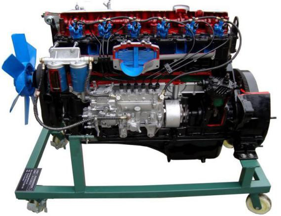 1.產(chǎn)品構(gòu)成:包含發(fā)動(dòng)機(jī)主體,配套風(fēng)扇、進(jìn)氣、排氣、增壓機(jī)、高壓油泵、起動(dòng)機(jī)、發(fā)電機(jī)。實(shí)物總成進(jìn)行機(jī)構(gòu)切剖,充分展示柴油發(fā)動(dòng)機(jī)機(jī)構(gòu)部分的內(nèi)外結(jié)構(gòu)。