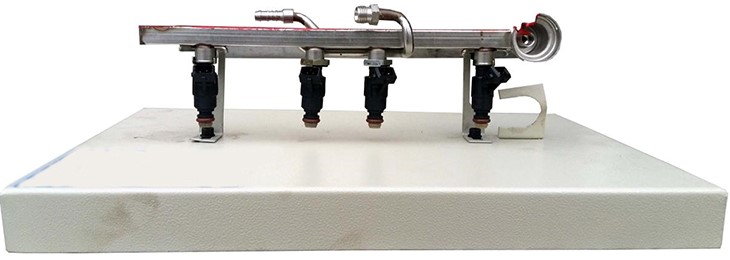 1.采用翻新大眾捷達噴油軌道總成(附件齊全,帶噴油器)進行解剖,各零部件齊全,能夠全面的展示總成的內(nèi)外結(jié)構(gòu)。