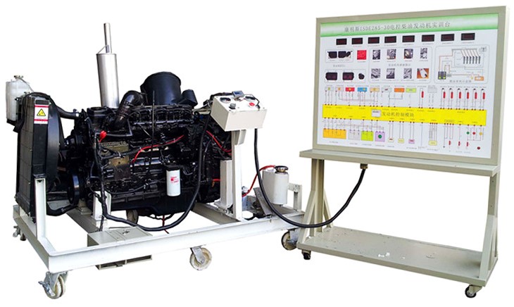 CA1125柴油發(fā)動機(jī)總成、組合儀表、發(fā)動機(jī)控制單元、散熱系統(tǒng)(水箱、風(fēng)扇、上下水管)、排氣系統(tǒng)、進(jìn)氣系統(tǒng)(進(jìn)氣軟管、空氣濾清器總成)、原車電路原理圖板及檢測端子面板、蓄電池、電源總開關(guān)、燃油箱、油水分離器、油門踏板裝置、可移動機(jī)臺架、臺架高溫及轉(zhuǎn)動等部位加裝防護(hù)裝置等。
