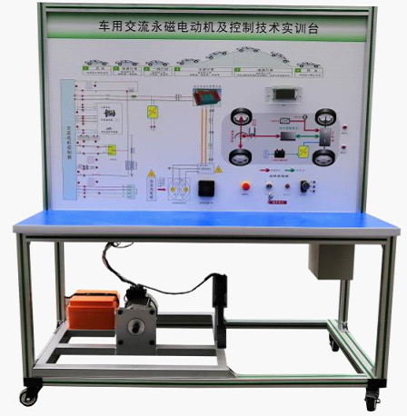 檢測控制面板(裝有各種檢測端子,1448×940mm彩色電路圖和工作原理示意圖)、組合儀表、點(diǎn)火開關(guān)、電機(jī)控制器、車載充電器與充電接口、DC-DC轉(zhuǎn)換器、鋰動力電池組、電動車電機(jī)(永磁同步電機(jī))、剎車開關(guān)、檔位開關(guān)、油門控制裝置、大電流繼電器、電源總開關(guān)、急停開關(guān)、輔助蓄電池(12V45AH)、一體化全鋁合金型材搭建的移動臺架(1500×700×1700mm (帶自鎖腳輪裝置,帶安裝檢測端子的原理面板,面板1448×940mm)、設(shè)備操作說明書。