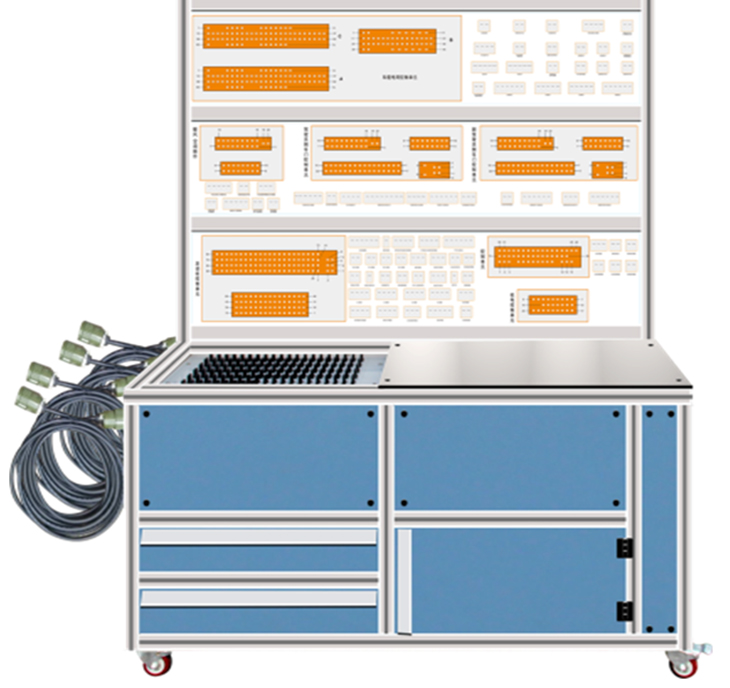 2、通過裝有與原車插頭配套插接器的線束,連接故障設(shè)置終端,故障設(shè)置終端通過專用線束連接檢測臺(tái),實(shí)現(xiàn)整車各系統(tǒng)電路教學(xué)、實(shí)訓(xùn)考核的多功能教學(xué)設(shè)備;