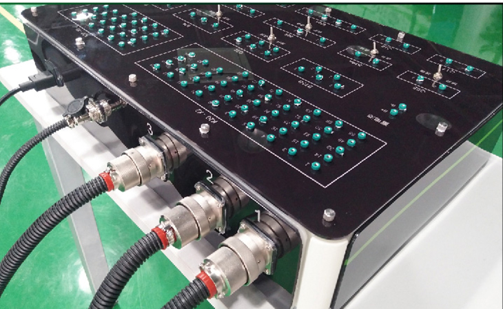 4、機(jī)械故障設(shè)置終端通過更換面板上不同功能的插件和短路跨接線實(shí)現(xiàn)斷路、線路虛接、對(duì)地短路、對(duì)正極短路故障設(shè)置,在機(jī)械故障設(shè)置終端不變的情況下更換不同的連接線束和檢測面板可實(shí)現(xiàn)不同系統(tǒng)的實(shí)訓(xùn)操作;