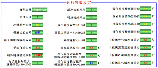 動(dòng)畫(huà)模式:觸摸屏或軟件連接模式下:可顯示壓縮機(jī)排氣溫度、吸氣溫度、冷凝溫度、蒸發(fā)溫度,可根據(jù)溫度實(shí)時(shí)調(diào)節(jié)機(jī)組過(guò)冷度。過(guò)熱度。