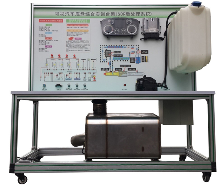 SCR后處理系統(tǒng)實驗設(shè)備底座框架采用高強度鋁合金型材拼接而成,平臺面板采用4mm厚耐腐蝕、耐創(chuàng)擊、耐污染、防火、防潮的高級鋁塑板,表面經(jīng)特殊工藝噴涂底漆處理;面板打印有永不褪色的彩色電路圖,表面噴涂光油;學生可直觀對照電路圖,認識和分析控制系統(tǒng)的工作原理;實訓臺面板上安裝有檢測端子、可直接在面板上檢測電信號,如電阻、電壓、電流等。