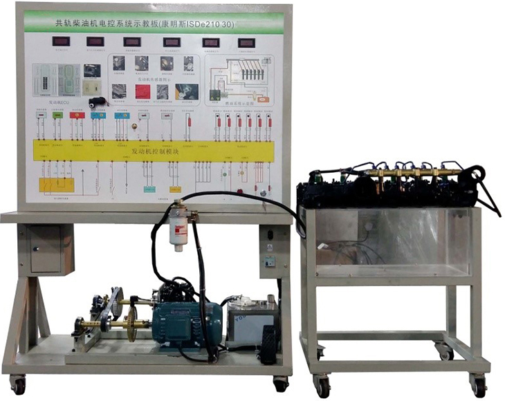 1.真實可運(yùn)行的共軌柴油發(fā)動機(jī)燃油噴射系統(tǒng),充分展示燃油噴射系統(tǒng)的組成結(jié)構(gòu)和工作過程。電機(jī)驅(qū)動曲軸位置信號輪,可演示電子燃油噴射工作情況。