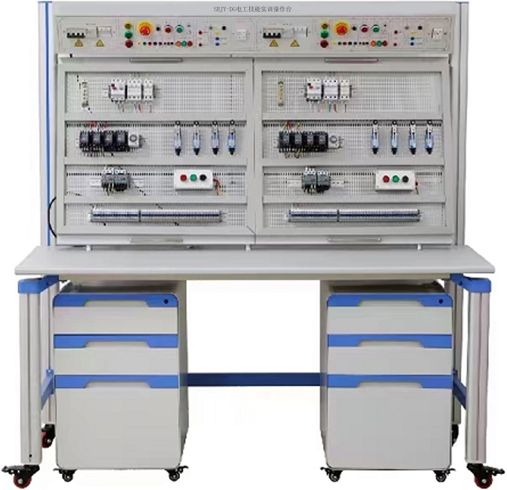 電氣安裝與維修實訓考核裝置是根據工廠電氣安裝和室內電氣安裝等維修 電工和電氣安裝工實訓鑒定要求開發(fā)的一種通用實訓平臺。 適合于各類職業(yè)院校 和技工學校維修電工、 電氣安裝工、水電工等有電氣實訓要求的相關專業(yè)的作為 公共實訓平臺使用。 采用鋼制網孔板和鋼制專用型材組接而成,安裝有自鎖式腳輪,方便移動和使用。裝 置表面噴塑,色彩穩(wěn)重氣派。電氣安裝與維修實訓裝置設計高度以人站在一級人字梯即可方便操作的高度,既安 全又能使使用者感受到施工現(xiàn)場環(huán)境。 橫向、 叢向寬度合適, 可以模擬現(xiàn)場線路的轉向布置。