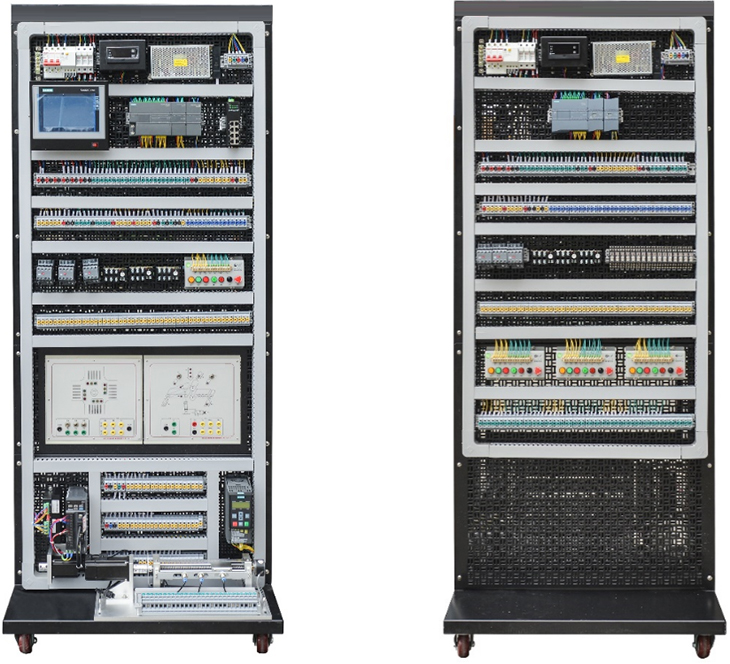 機電一體化實驗實訓(xùn)裝置、PLC與自動化實驗實訓(xùn)室設(shè)備自動化生產(chǎn)線實訓(xùn)室、氣動控制實訓(xùn)室、伺服控制實訓(xùn)室、過程控制實訓(xùn)室、仿真控制實訓(xùn)室、自動化創(chuàng)新工作室等;能提供可編程控制技術(shù)、交流伺服驅(qū)動技術(shù)、人機界面技術(shù)、多自由度機械臂技術(shù)、網(wǎng)絡(luò)控制技術(shù)、自動化物流管理、虛擬仿真等自動化領(lǐng)域核心技術(shù)的實踐訓(xùn)練;教學項目涵蓋單項技能訓(xùn)練、綜合技能提升、創(chuàng)新設(shè)計能力培養(yǎng)、自動化新技術(shù)應(yīng)用等多個層面,為滿足學生技能訓(xùn)練、教師實踐能力培養(yǎng)、企業(yè)員工培訓(xùn)、技術(shù)研發(fā)與服務(wù)提供了有力保障。機電一體化實驗實訓(xùn)平臺、PLC與自動化實訓(xùn)室設(shè)備是《PLC控制技術(shù)》、《變頻器控制技術(shù)》、《組態(tài)控制技術(shù)》等課程的教學實驗實訓(xùn)、課程設(shè)計、自動化綜合實訓(xùn)及創(chuàng)新設(shè)計等實踐基地,也是技能培訓(xùn)的教學平臺。滿足學生進行PLC實訓(xùn)、課程設(shè)計、畢業(yè)設(shè)計等需求。機電一體化實驗實訓(xùn)平臺、PLC與自動化實訓(xùn)室設(shè)備主要功能是為學生提供可編程邏輯控制器(PLC)的相關(guān)實訓(xùn)與實訓(xùn)操作環(huán)境,幫助學生深入理解PLC的工作原理、編程方法、以及在工業(yè)自動化領(lǐng)域的應(yīng)用。