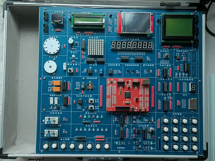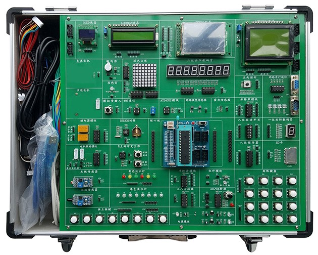 單片機(jī)實(shí)訓(xùn)實(shí)驗(yàn)臺(tái),單片機(jī)技術(shù)實(shí)驗(yàn)箱,單片機(jī)與嵌入式實(shí)驗(yàn)室,萬能單片機(jī)實(shí)驗(yàn)開發(fā)系統(tǒng)、單片機(jī)開發(fā)應(yīng)用技術(shù)綜合實(shí)驗(yàn)裝置是電子與通信、自動(dòng)化信息工程技術(shù)、計(jì)算機(jī)基礎(chǔ)課實(shí)訓(xùn)室等課程實(shí)驗(yàn)實(shí)訓(xùn)。單片機(jī)實(shí)驗(yàn)室是專為電子、通信和自動(dòng)化等專業(yè)而設(shè)立,單片機(jī)實(shí)驗(yàn)室設(shè)備適應(yīng)《微機(jī)原理與接口技術(shù)》《單片機(jī)原理與應(yīng)用》課程的需要,滿足了正常實(shí)驗(yàn)教學(xué)的同時(shí),設(shè)立了開放性實(shí)驗(yàn)室功能,充分調(diào)動(dòng)了學(xué)生學(xué)習(xí)的積極性,方便了學(xué)生和老師實(shí)驗(yàn)程序的編制和調(diào)試。單片機(jī)實(shí)訓(xùn)設(shè)備主要承擔(dān)《單片機(jī)原理》、《微機(jī)接口與技術(shù)》等相關(guān)課程的實(shí)驗(yàn)、課程設(shè)計(jì)及畢業(yè)設(shè)計(jì)。