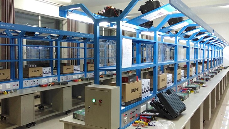 電子工藝實(shí)習(xí)室是供學(xué)生焊接練習(xí)、電子產(chǎn)品組裝調(diào)試操作的實(shí)驗(yàn)室,學(xué)生進(jìn)行焊接操作。配備的儀器設(shè)備主要有直流穩(wěn)壓電源、示波器、萬用表、工具箱等。為了改善實(shí)習(xí)室的空氣環(huán)境衛(wèi)生,還專門配備了抽風(fēng)系統(tǒng)。開設(shè)的課程有《電子工藝實(shí)習(xí)》、《電工實(shí)習(xí)》,包括電路元件的選配、電子產(chǎn)品的安裝、焊接和性能測試等環(huán)節(jié)。電子工藝實(shí)驗(yàn)實(shí)訓(xùn)室設(shè)備主要面向汽車、機(jī)械、電信、電氣、計(jì)算機(jī)、經(jīng)濟(jì)、管理等學(xué)院的學(xué)生,培養(yǎng)學(xué)生的動手實(shí)踐能力、分析問題和解決問題的能力以及創(chuàng)新精神。