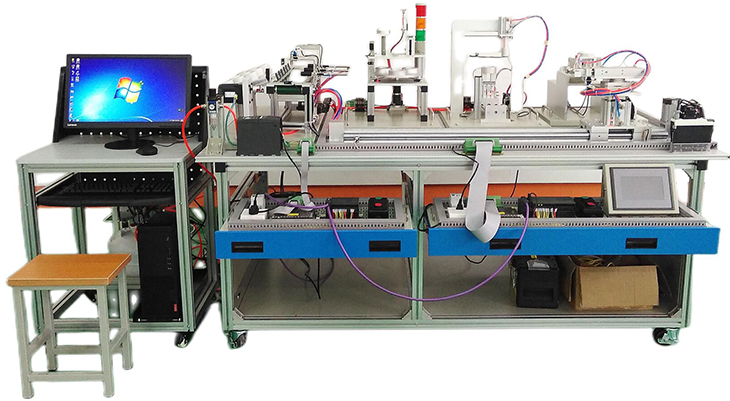 自動(dòng)化生產(chǎn)線實(shí)訓(xùn)考核系統(tǒng),可以培養(yǎng)和提高學(xué)生專業(yè)綜合能力,是一種重要的實(shí)訓(xùn)設(shè)備。自動(dòng)化生產(chǎn)線實(shí)訓(xùn)系統(tǒng)、基于PLC技術(shù)的自動(dòng)化生產(chǎn)線實(shí)訓(xùn)考核系統(tǒng),可以培養(yǎng)和提高學(xué)生專業(yè)綜合能力,是一種重要的實(shí)訓(xùn)設(shè)備。自動(dòng)化生產(chǎn)線實(shí)訓(xùn)系統(tǒng)整體包括自動(dòng)供料、檢測(cè)傳輸、檢測(cè)加工、自動(dòng)裝配、自動(dòng)分揀等工序,很好的將機(jī)械技術(shù)、微電子技術(shù)、電工電子技術(shù)、傳感測(cè)試技術(shù)、接口技術(shù)、信息變換技術(shù)、網(wǎng).絡(luò)通信技術(shù)等多種技術(shù)有機(jī)地結(jié)合。該系統(tǒng)中自動(dòng)分揀站的設(shè)計(jì)過(guò)程,包括系統(tǒng)硬件設(shè)計(jì)、PLC控制設(shè)計(jì)和程序設(shè)計(jì)方法,F(xiàn)代化的自動(dòng)生產(chǎn)設(shè)備的最大特點(diǎn)是它的綜合性和系統(tǒng)性,在這里,機(jī)械技術(shù)、微電子技術(shù)、電工電子技術(shù)、傳感測(cè)試技術(shù)、接口技術(shù)、信息變換技術(shù)、網(wǎng)絡(luò)通信技術(shù)等多種技術(shù)有機(jī)地結(jié)合,并綜合應(yīng)用到生產(chǎn)設(shè)備中:而系統(tǒng)性指的是,生產(chǎn)線的傳感檢測(cè)、傳輸與處理、控制、執(zhí)行與驅(qū)動(dòng)等機(jī)構(gòu)在微處理單元的控制下協(xié)調(diào)有序地工作,有機(jī)地融合在一起?删幊绦蚩刂破(PLC)以其高抗干擾能力、高可靠性、高性能價(jià)格比且編程簡(jiǎn)單而廣泛地應(yīng)用在現(xiàn)代化的自動(dòng)生產(chǎn)設(shè)備中,擔(dān)負(fù)著生產(chǎn)線的大腦一微 處理單元的角色。因此,培養(yǎng)掌握機(jī)電一體化技術(shù),掌握PLC技術(shù)及PLC網(wǎng)絡(luò)技術(shù)的技術(shù)人材是當(dāng)務(wù)之急。而一套基于PLC技術(shù)的自動(dòng)化生產(chǎn)線實(shí)訓(xùn)考核設(shè)備可以模擬一個(gè)與實(shí)際生產(chǎn)情況+分接近的控制過(guò)程,使學(xué)習(xí)者得到一個(gè)非常接近于實(shí)際的教學(xué)設(shè)備環(huán)境,從而縮短了理論教學(xué)與實(shí)際應(yīng)用之間的距離。自動(dòng)分揀站需完成對(duì)上一單元送來(lái)的已加工、裝配的工件進(jìn)行分揀。使不同顏色的工件從不同的料槽分流的功能。當(dāng)輸送站送來(lái)工件放到傳送帶上并為入料口光電傳感器檢測(cè)到時(shí),即啟動(dòng)變頻器,工件開始送入分揀區(qū)進(jìn)行分揀。上海碩博弘揚(yáng)大國(guó)工匠精神, 發(fā)展職業(yè)教育,應(yīng)用教學(xué)設(shè)備,為企業(yè)培養(yǎng)高技能人才,而專業(yè)生產(chǎn):光機(jī)電一體化(自動(dòng)生產(chǎn)線)實(shí)訓(xùn)裝置、灌裝自動(dòng)化生產(chǎn)線實(shí)訓(xùn)裝置、工業(yè)自動(dòng)生產(chǎn)線實(shí)訓(xùn)裝置 、工業(yè)控制模擬實(shí)訓(xùn)裝置 、機(jī)電一體化組合實(shí)訓(xùn)平臺(tái) 、機(jī)電一體化綜合實(shí)訓(xùn)考核裝置、自動(dòng)化生產(chǎn)安裝與調(diào)試實(shí)訓(xùn)裝置 、光機(jī)電一體化高速分揀實(shí)訓(xùn)系統(tǒng) 、典型機(jī)電設(shè)備安裝與控制實(shí)訓(xùn)裝置、模塊式柔性自動(dòng)環(huán)形生產(chǎn)線實(shí)驗(yàn)系統(tǒng)(帶機(jī)器人工程型)、立體停車庫(kù)實(shí)物教學(xué)實(shí)驗(yàn)裝置、機(jī)電一體化柔性生產(chǎn)線加工實(shí)訓(xùn)系統(tǒng)(5站)、網(wǎng)絡(luò)型模塊式柔性自動(dòng)化生產(chǎn)線實(shí)驗(yàn)系統(tǒng)、模塊式柔性自動(dòng)環(huán)形生產(chǎn)線實(shí)驗(yàn)系統(tǒng)(工程型)、柔性生產(chǎn)制造實(shí)驗(yàn)系統(tǒng)(工程型)、現(xiàn)代物流倉(cāng)儲(chǔ)自動(dòng)化實(shí)驗(yàn)系統(tǒng)、運(yùn)動(dòng)實(shí)訓(xùn)裝置、循環(huán)搬運(yùn)自動(dòng)控制實(shí)訓(xùn)裝置、平面雙軸運(yùn)行控制實(shí)訓(xùn)裝置、工業(yè)機(jī)械手實(shí)訓(xùn)裝置、物料分揀實(shí)訓(xùn)裝置、機(jī)械手實(shí)訓(xùn)裝置 、立體倉(cāng)庫(kù)實(shí)訓(xùn)裝置、十字路口交通燈實(shí)訓(xùn)系統(tǒng)、機(jī)電液氣一體化綜合實(shí)訓(xùn)裝置、光機(jī)電一體化高速分揀實(shí)訓(xùn)系統(tǒng)、步進(jìn)伺服控制綜合實(shí)訓(xùn)平臺(tái)、光機(jī)電氣一體化控制實(shí)訓(xùn)系統(tǒng)、 光機(jī)電一體化綜合實(shí)訓(xùn)考核裝置、光機(jī)電一體化實(shí)訓(xùn)考核裝置、光機(jī)電一體化實(shí)訓(xùn)考核裝置、光機(jī)電氣一體化控制實(shí)訓(xùn)系統(tǒng)、自動(dòng)生產(chǎn)線拆裝與調(diào)試實(shí)訓(xùn)裝置、柔性自動(dòng)化生產(chǎn)線實(shí)訓(xùn)系統(tǒng)。
